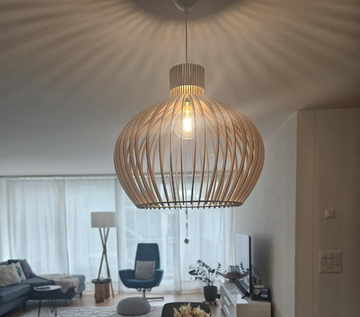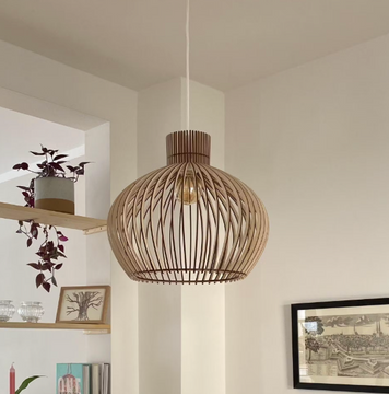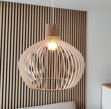 Bring nordische Gemütlichkeit in dein Zuhause – mit unserer BAIDUR, einer handgefertigten Pendelleuchte aus FSC-zertifiziertem Holz. Inspiriert vom minimalistischen skandinavischen Stil, vereint sie natürliche Materialien mit modernem Design. Die filigranen Lamellen aus baltischem Birkenholz werfen ein weiches, warmes Licht und schaffen eine Atmosphäre voller Ruhe und Stil – perfekt für Wohnzimmer, Esszimmer oder Schlafzimmer.