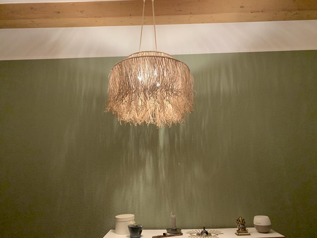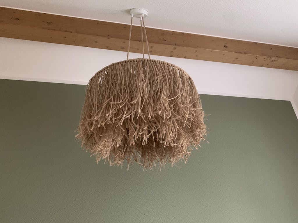 Die feinen Jutefasern streuen das Licht weich und erzeugen eine gemütliche, entspannende Atmosphäre, perfekt für ruhige Stunden oder kreative Energie.